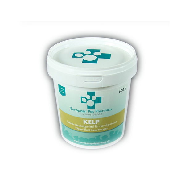 Kelp održava dobru probavu, posebno poboljšava pigmentaciju vaših pasa i održava zdravu pseću kožu i dlaku. Također poboljšava otpornost na infekcije i stoga je koristan dodatak svakom psu, posebno u sezoni zaraznog kašlja. Za najbolje rezultate preporučujemo da se Kelp koristi zajedno s Omega 3 kapsulama European Pet Pharmacy.