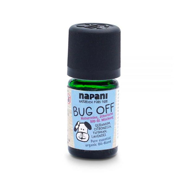 Bio mješavina eteričnih ulja geranije, lavande, timijana i citronele za učinkovitu borbu protiv vanjskih parazita Bug Off. To je mješavina ulja visoke kvalitete koju s ponosom predstavljamo kao odličnu alternativu za zaštitu protiv krpelja, komaraca i buha.