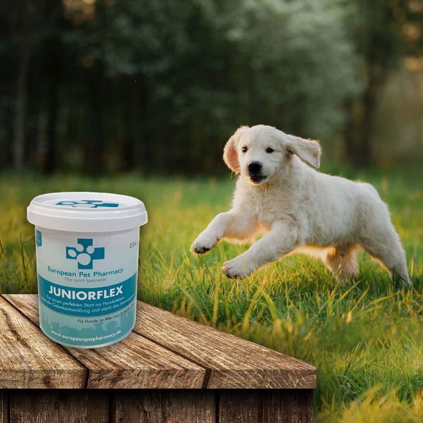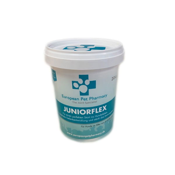 Dodatak Juniorflex je stvoren posebno za štence u dobi od 5-18 mjeseci. Sadrži zelenousnu dagnju, koja je jedna od važnih sastojaka za stvaranje zglobne hrskavice i sinovijalne tekućine. Dodan je i vitamin C, koji osigurava bolju probavu i jača imunološki sustav.