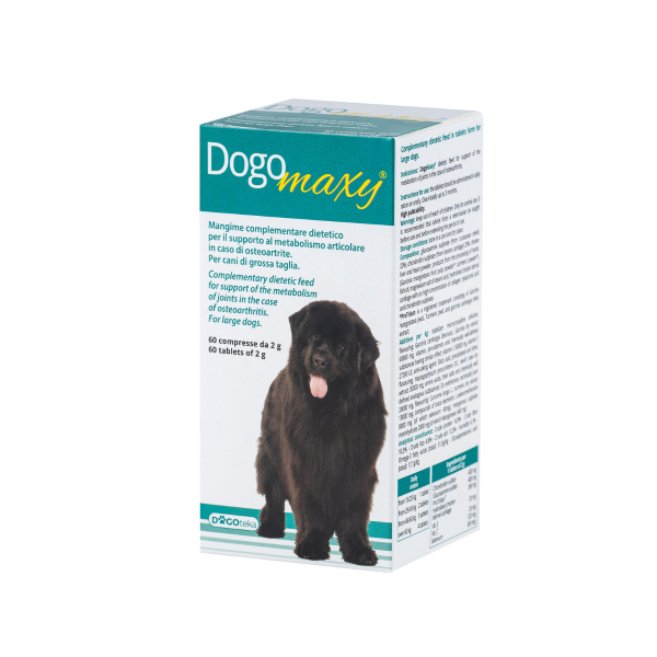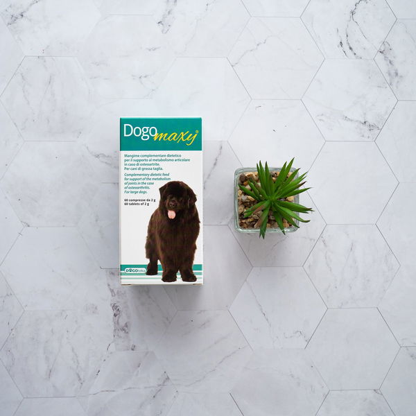 DOGOmaxy® je dijetetski dodatak prehrani pasa, razvijen posebno za velike pasmine. Podržava funkciju zglobova, tetiva i ligamenata kod pasa, a posebno ga preporučujemo za pse velikih pasmina koji su izloženi intenzivnom radu ili podložni habanju zglobne hrskavice.