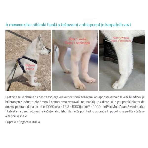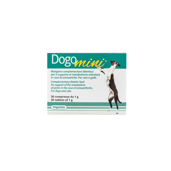 DOGOmini® je dijetetski dodatak prehrani pasa razvijen posebno za srednje velike i male pasmine. Podržava osteoartikularnu funkciju tetiva i ligamenata kod pasa, posebno se preporučuje za pse koji su izloženi intenzivnom radu ili su podložni trošenju zglobne hrskavice.