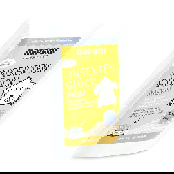 Potpuni i uravnoteženi obrok za odrasle pse od proteina insekata, brokule, marelice i kokosovih pahuljica - hipoalergena receptura za pse s intolerancijama i alergijama na najčešće i klasične namirnice u svakodnevnom životu.