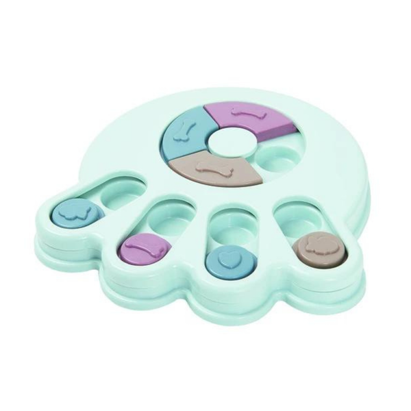 Igračka za mentalnu stimulaciju Šapa je interaktivna igračka za pse. U nju sakrijte poslastice ili dnevni obrok vašeg psa i ostavite ga da se bavi otvaranjem poklopaca i traženjem hrane. Na taj način će se posvetiti jednom zadatku, mentalno će se aktivirati i učinkovito umoriti. Budući da će mu traženje oduzeti vrijeme i zahtijevati naprezanje mozga, obrok će trajati 10x duže, a pas će na kraju biti ugodno umoran.