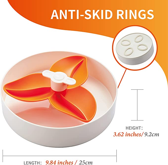 Sporije hranjenje blagotvorno djeluje na probavu; poboljšava apsorpciju hranjivih tvari, utječe na lakšu i bolju metabolizaciju te lakše izlučivanje toksina iz tijela. Osim toga, sprječavanjem gutanja hrane smanjujemo nadutost i nakupljanje plinova u crijevima. Hranu možete raspodijeliti u više manjih odjeljaka na rotoru i u zdjelu ispod rotora te na taj način usporiti hranjenje.
