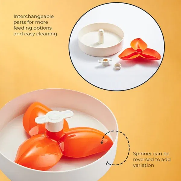 Svaka zdjela ima višenamjenski središnji rotor koji se može prilagoditi po visini i okrenuti u drugom smjeru ili naopako te tako ponuditi psiću nove opcije zanimacije. Svaka zdjela ima na donjoj strani četiri velike, protuklizne prstene, što osigurava da zdjela ostane na svom mjestu tijekom hranjenja.