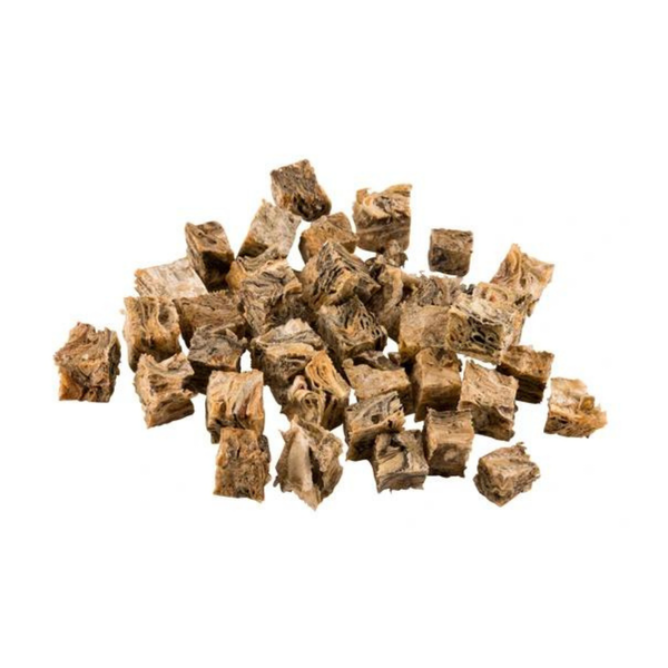 Preporučujemo ih za nagradu između obroka ili kao zadnju poslasticu navečer, jer njima učinkovito čiste naslage s zuba. Svi psi ih obožavaju, čak ih i najizbirljiviji s užitkom pojedu. Kocke od lososa sadrže samo 3,8% masti, pa su pogodne i za pse koji imaju problema s prekomjernom tjelesnom težinom.