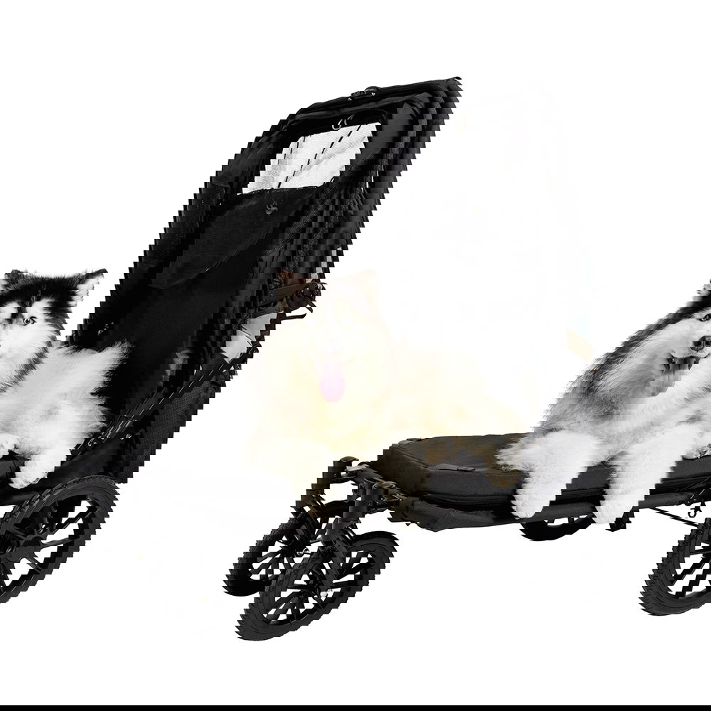 Kolica za pse Grand Cruiser Large dizajnirana su s niskim podvozjem i kompatibilna su s posebnom rampom (dostupno uz doplatu), kako bi vaš ljubimac mogao lako ući i izaći iz kolica. Kabina kolica može se podići, a sporo spuštanje kabine sprječava moguće ozljede. Zahvaljujući među sloju jastuka od POE (poliolefinski elastomer) zračnih vlakana, osigurana je dodatna udobnost.