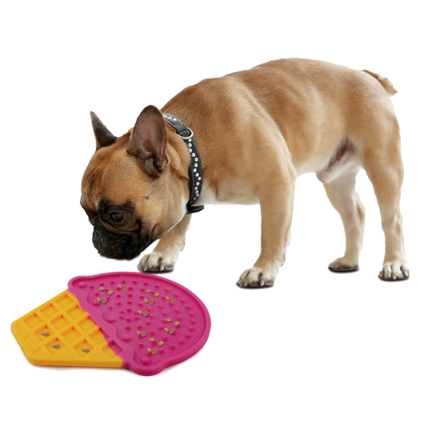 AFP (All For Paws) lizaljka u obliku sladoleda je korisna na tisuću i jedan način, na njoj možemo poslužiti i suho i mokro jelo. Dno s različitim reljefima otežava psu gutanje većih komada i tako usporava hranjenje čak i kod najpohlepnijih.