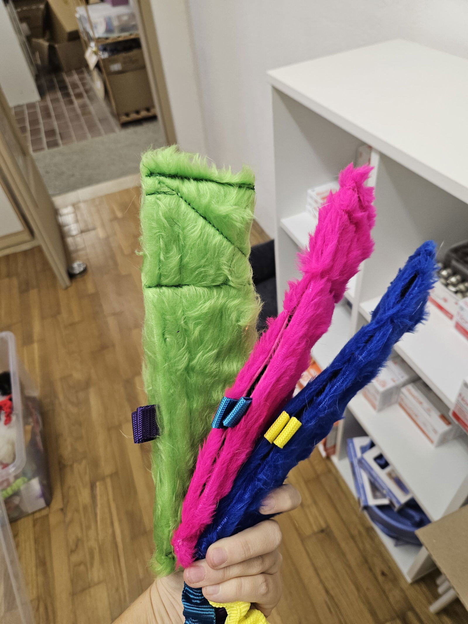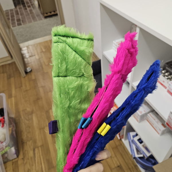 Izdržljiva motivacijska igračka marke Floramicato s jastučićem za grizenje i lov umjetne mamce. Jastučić ima unutarnji džep u koji možete staviti poslastice za dodatnu motivaciju. Riječ je o igrački koja je posebno dizajnirana za pse s niskom motivacijom i koje je potrebno dodatno potaknuti za igru i rad. Igračka Fluffy Nyam je odlična za pse kojima je hrana najveća motivacija za rad i igru. Igračka je prikladna za sve pse koji vole loviti i vući igračke.