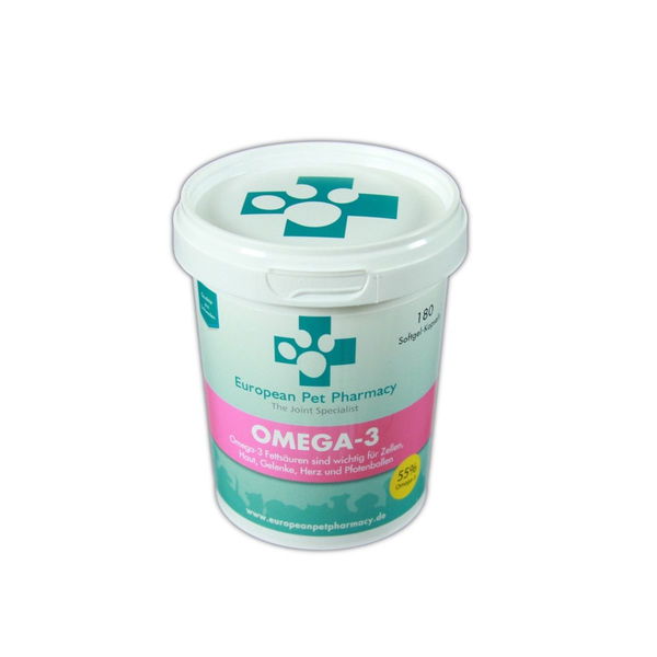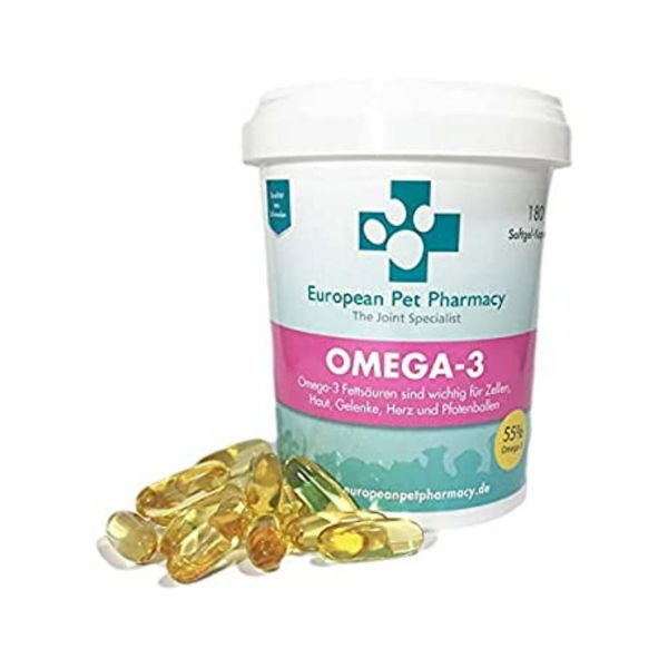 Omega-3 masne kiseline imaju važnu ulogu, jer podržavaju sve glavne tjelesne funkcije kod pasa. Tijelo ih u dovoljnim količinama nije sposobno proizvesti samo, stoga je bitno da ih pas dovoljno unosi kroz prehranu. Na dulji rok je vrlo važno, da je u tijelu njihova pravilna ravnoteža, iako se nedostatak ne primijeti odmah. Najbolje probavljivi izvori omega-3 masnih kiselina su riblja ulja hladnovodnih riba (npr. losos, tuna itd.). Omega-3 kapsule European Pet Pharmacy izrađene su isključivo od sardina i divljih inćuna, jer sadrže manje zagađivača od ostalih hladnovodnih riba, obzirom da se hrane izravno planktonom, pa je kvaliteta tih ulja znatno viša.