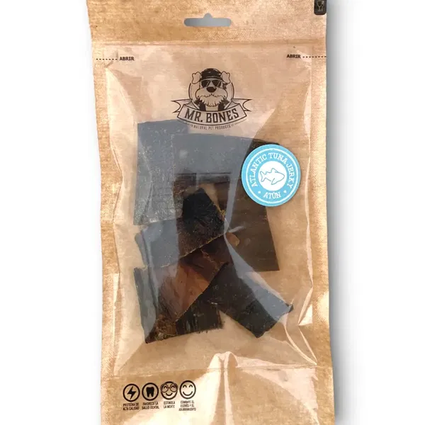 100% prirodni riblji snack za pse u obliku manjih i većih komadića od čistog mesa i kože tune. Komadi se suše na zraku, pri niskoj temperaturi, kako bi se vlaga u mesu postupno izlučila i time produžio vijek trajanja bez dodavanja aditiva i konzervansa. Zadržan je originalni okus ribe.