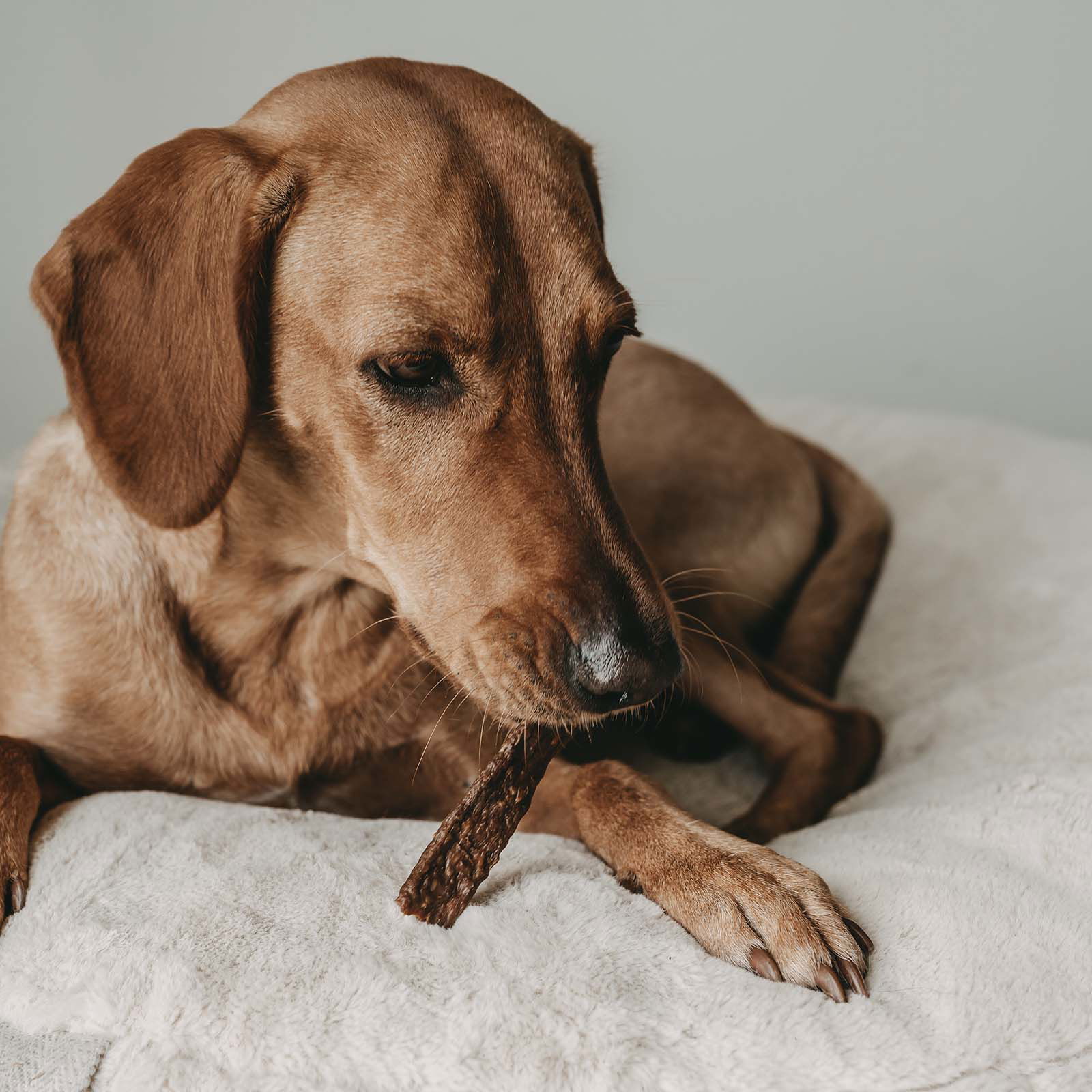Osušeni pačji trakovi su izvrstan zalogaj za međuobroke ili kao nagrada prilikom obuke psa. Budući da su meke konzistencije, psi ih brzo pojedu i s veseljem nastavljaju s treningom. Kako su izrađeni samo od pačjeg mesa, lako ih je kidati na manje komadiće - bez problema ih možemo razdvojiti ili narezati za pse manje veličine. Pačji trakovi su nježno osušeni na zraku, tako da zadržavaju što više hranjivih tvari. Lako su probavljivi i obožavaju ih svi psi, čak i oni izbirljiviji.