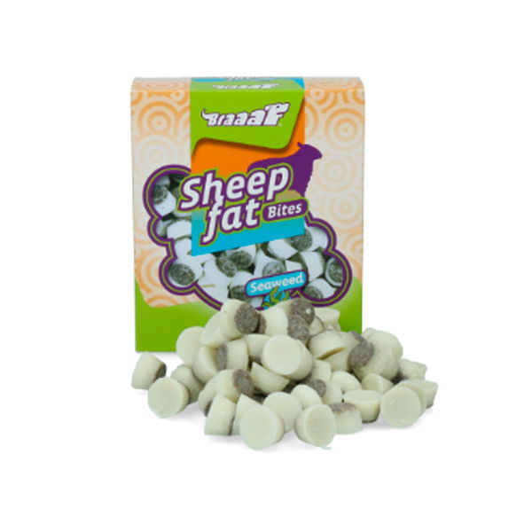 Braaaf ovčji zalogaji s morskom travom su 100% prirodna poslastica s ovčjom masti i dodatkom morske trave, gdje oba imaju brojne pozitivne učinke na zdravlje pasa.