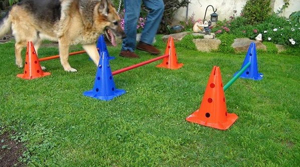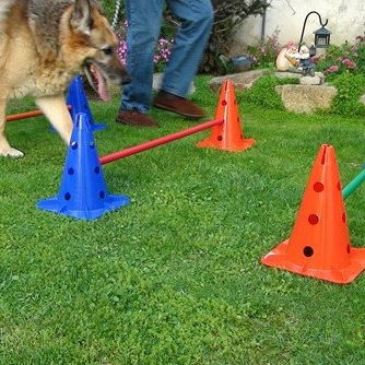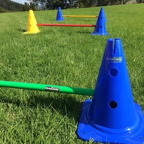 Sa stožcima i plastičnim palicama možemo stvoriti rehabilitacijski poligon za psa. Važno je prethodno konzultirati stručnjaka (ortopeda za pse ili fizioterapeuta) o prikladnim vježbama za psa. Stožce koristimo u kombinaciji s plastičnim palicama za rehabilitaciju ili bez - ovisno o vježbi. Palice se mogu pričvrstiti sa strane ili na vrh stožca, ovisno o tome želimo li podići palice s tla ili ih postaviti uspravno. Stožci imaju rupe na različitim visinama koje su posebno oblikovane za pričvršćivanje palica. Palice se također mogu postaviti na vrh stožca kako bi se stvorila slalomska staza za rehabilitaciju.