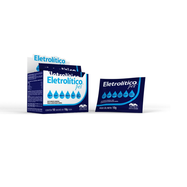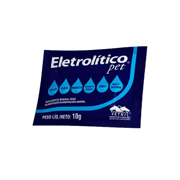 Electrolitico pet nadomješta gubitak elektrolita nakon tjelesne aktivnosti ili u slučaju gubitka tjelesnih tekućina drugog podrijetla (napor, bolest, stres) kod pasa, mačaka, kunića, ptica, glodavaca, reptila i drugih malih životinja. Preparat Eletrolitico je posebno specifičan za male životinje jer sadrži više kalija i maltodekstrina, koji ne iritiraju probavni sustav i crijeva te osigurava energiju dugotrajno. Vrlo je učinkovit u ponovnom uspostavljanju unutarnje stanične ravnoteže, poboljšava stanje nakon tjelovježbe i ključan je za povrat energije; lako probavljiv.<\/p>\n