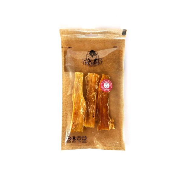 Goveđa tetiva je 100% prirodna poslastica, koja psa za duže vrijeme okupira, istovremeno si žvakanjem čisti zube i potpomaže prokrvljenost desni. Prikladna je za pse svih veličina i starosti.