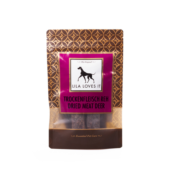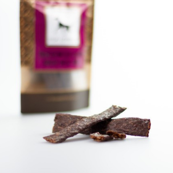 Sušeni divljačinski trakovi su odličan zalogaj između obroka ili nagrada za trening pasa. Budući da su mekani, psi ih brzo pojedu i s veseljem nastavljaju s treningom. Jer su napravljeni samo od mesa srne, prikladni su i za alergične pse. Lako se razdvoje ili narežu za manje pse. Divljačinski trake su prirodno sušene na zraku, tako da zadržavaju što više hranjivih tvari. Lako su probavljivi i obožavaju ih svi psi, uključujući i one izbirljivije.