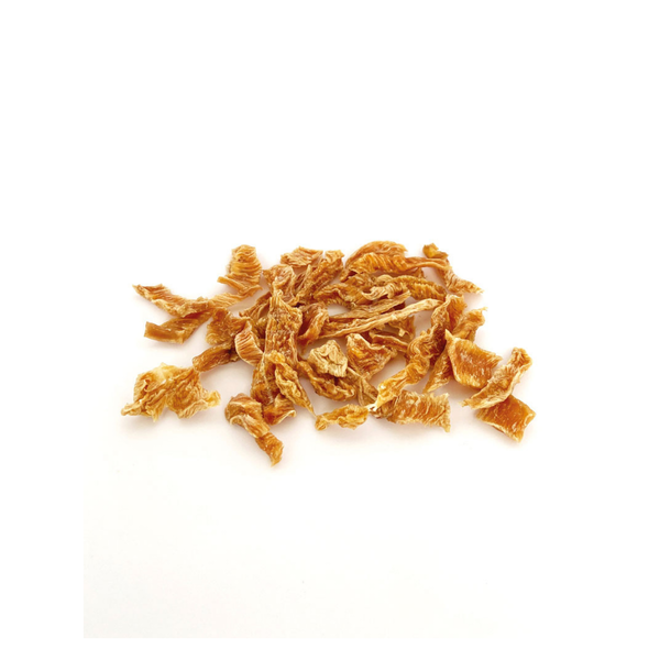 Sušeni pileći trakovi su 100% prirodni zalogaji od pilećih prsa. Odlični su za nagradu tijekom treninga, ali i kao zalogaj između obroka, jer su izvrstan izvor proteina. S obzirom na to da je meso sušeno na niskoj temperaturi, očuvane su gotovo sve hranjive tvari, arome i okusi.