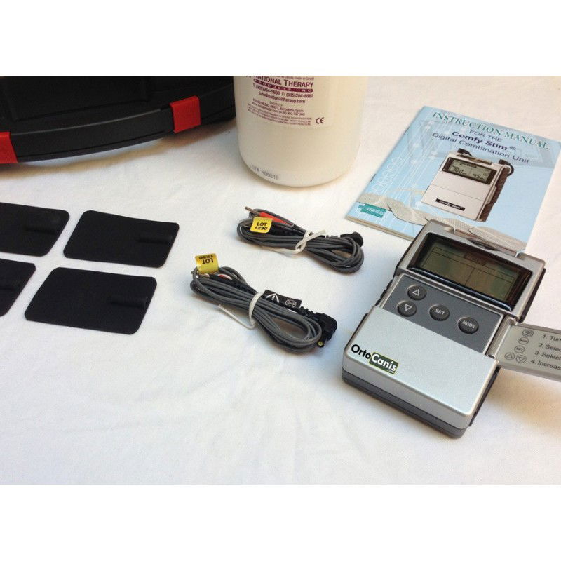 TENS paket marke Ortocanis sadrži EV806 TENS elektrostimulator s EMS (elektro-mišićnim stimulatorom), 4 gumene elektrode (40x60) i upute za uporabu. Elektrode su izrađene od provodne gume koja se koristi s kontaktnim gelom. Baterije i gel nisu uključeni.