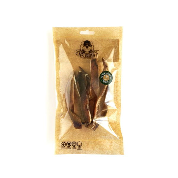 Uši iberskog praseta su 100% prirodna poslastica, koja psa duže vrijeme zaokupi, a istovremeno svojim žvakanjem čisti zube i potiče cirkulaciju desni. Rezane su na trake, pa su prikladne i za manje pse.