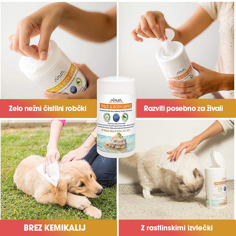 Možemo ih koristiti za brisanje prljavštine s šapa prije nego što pas uđe u kuću, auto ili jednostavno za održavanje čistoće između kupanja. Maramice su dizajnirane s blagom formulom, za održavanje čiste i zdrave dlake te za elastičnu i meku pseću kožu.