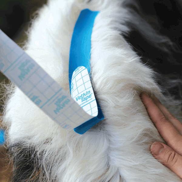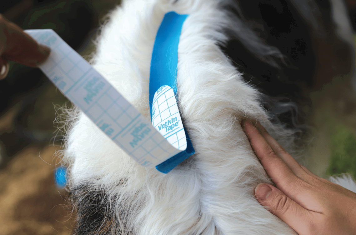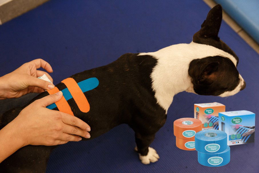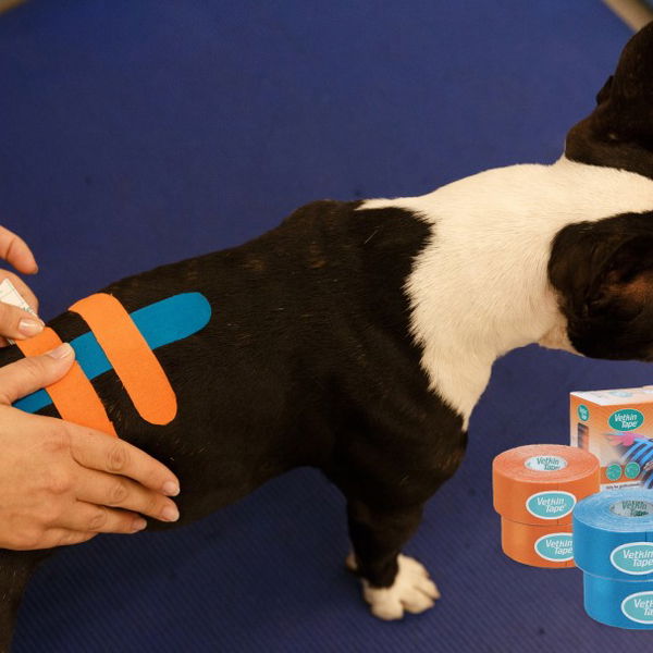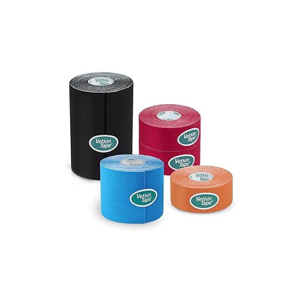Akrilna ljepljiva traka bez lateksa, posebno je dizajnirana za rehabilitaciju pasa. Aktivira se temperaturom, hipoalergena je i prijateljska prema psećoj dlaci i koži, a zbog valovitog uzorka osigurava udobnost. Tanka, elastična, pamučna "kineziotape" traka za potporu terapiji pasa, namijenjena je kinezioterapijama za životinje. VetkinTape® kineziološka traka je siguran proizvod bez lateksa s oznakom kvalitete TUV.